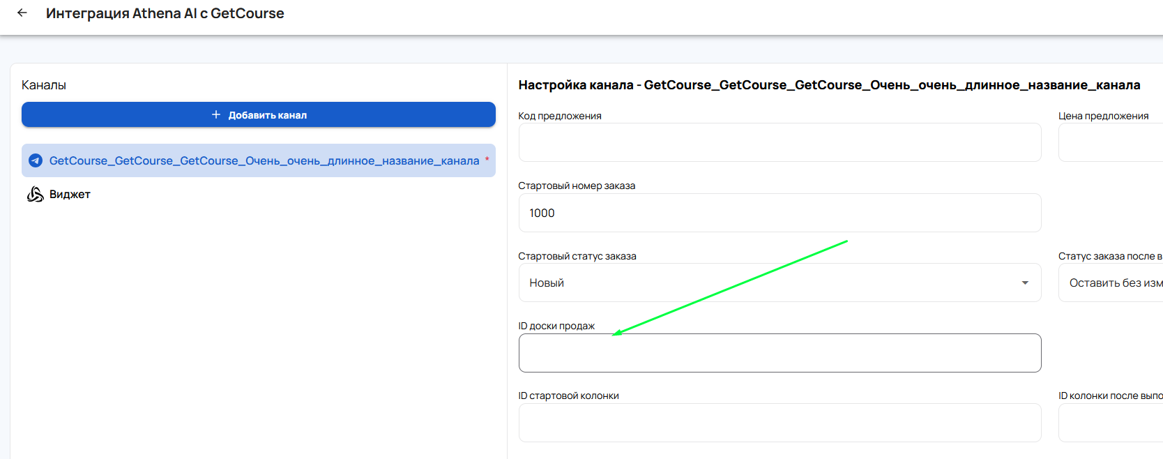 Перейти в доску продаж -> скопировать id -> вставить в поле ID доски продаж в настройках интеграции