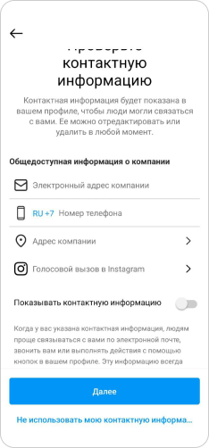 Пропишите ваши контакты и нажмите кнопку "Далее"