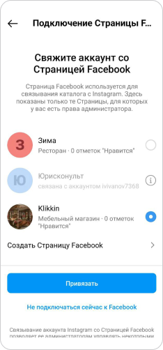 Cвяжите аккаунт Instagram со страницей FB