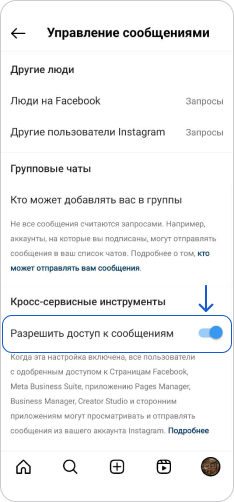 Активируйте настройку "Разрешить доступ к сообщениям"