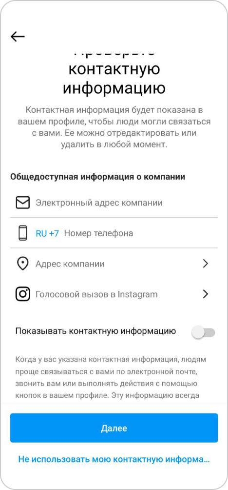 Пропишите ваши контакты и нажмите кнопку "Далее"