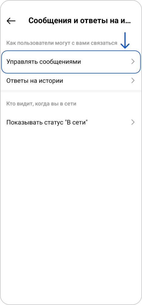Перейдите к пункту "Управлять сообщениями"