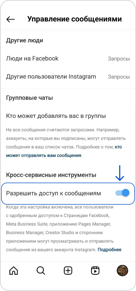Активируйте настройку "Разрешить доступ к сообщениям"