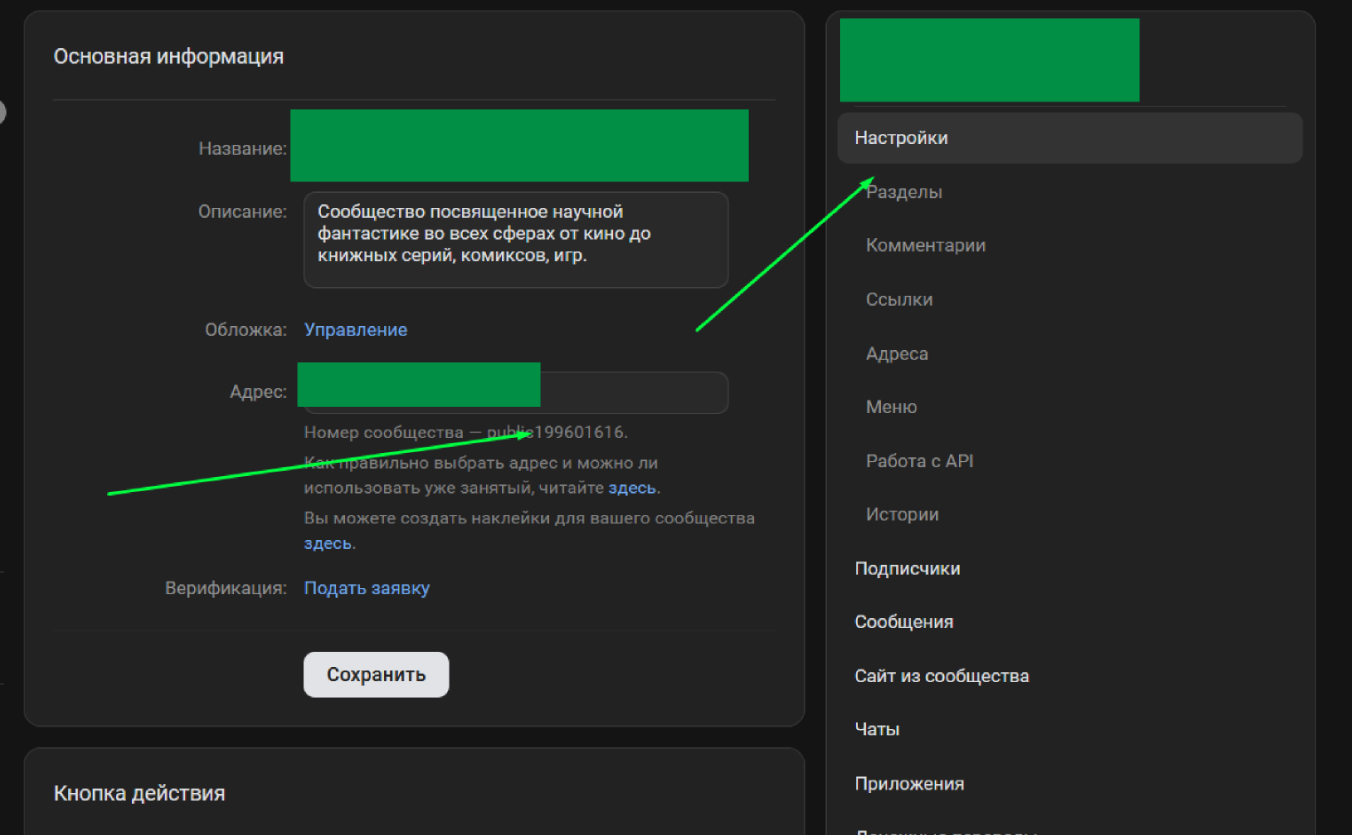 ID сообщества: перейдите в настройки сообщества -> скопируйте id (цифры) из данного меню, и вставьте в меню создания в Афине.