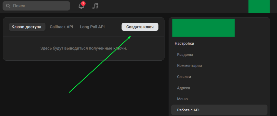 API ключ: здесь же в меню настроек -> Работа с API -> Создать ключ