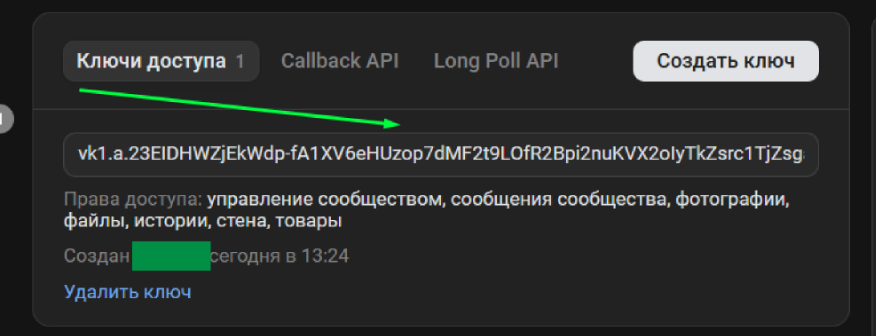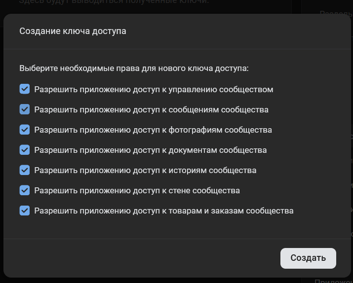 Важно: обязательно «Разрешить приложению доступ к управлению сообществом».