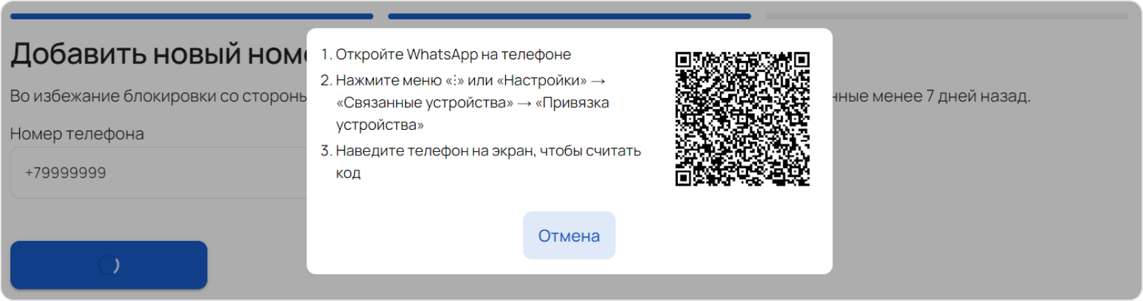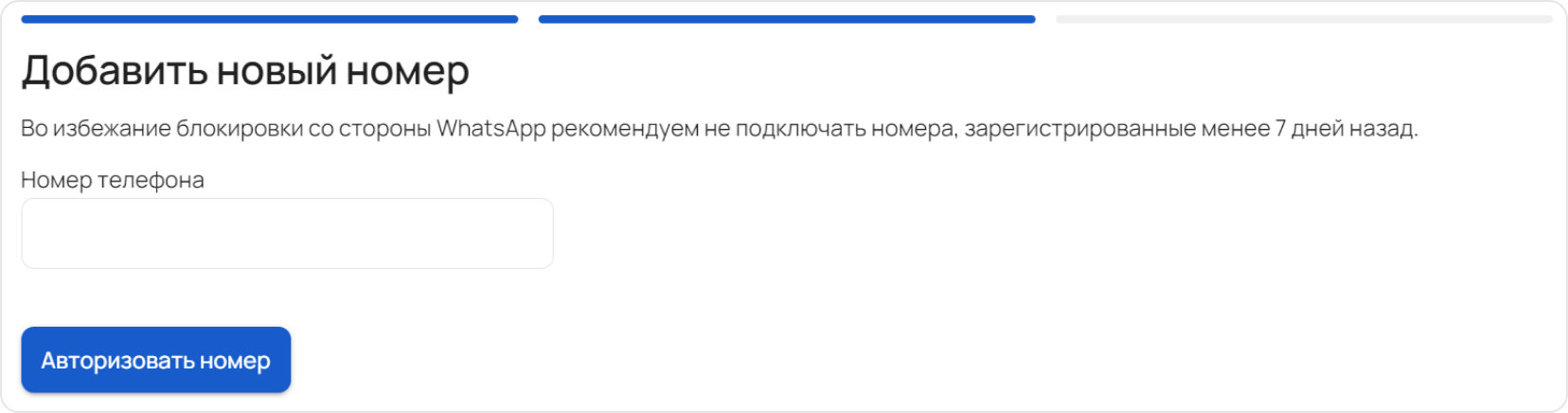 Для предотвращения блокировки со стороны WhatsApp, рекомендуется не использовать номера, зарегистрированные менее 7 дней назад. Также рекомендуется провести 10-15 активных диалогов с пользователями WhatsApp.