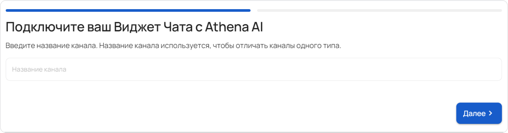 - Перейдите в раздел “Каналы”, нажмите “Добавить канал” и выберите Athena Chat Widget